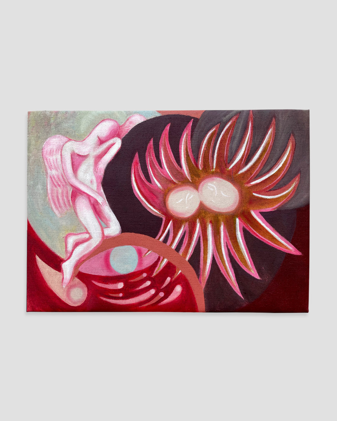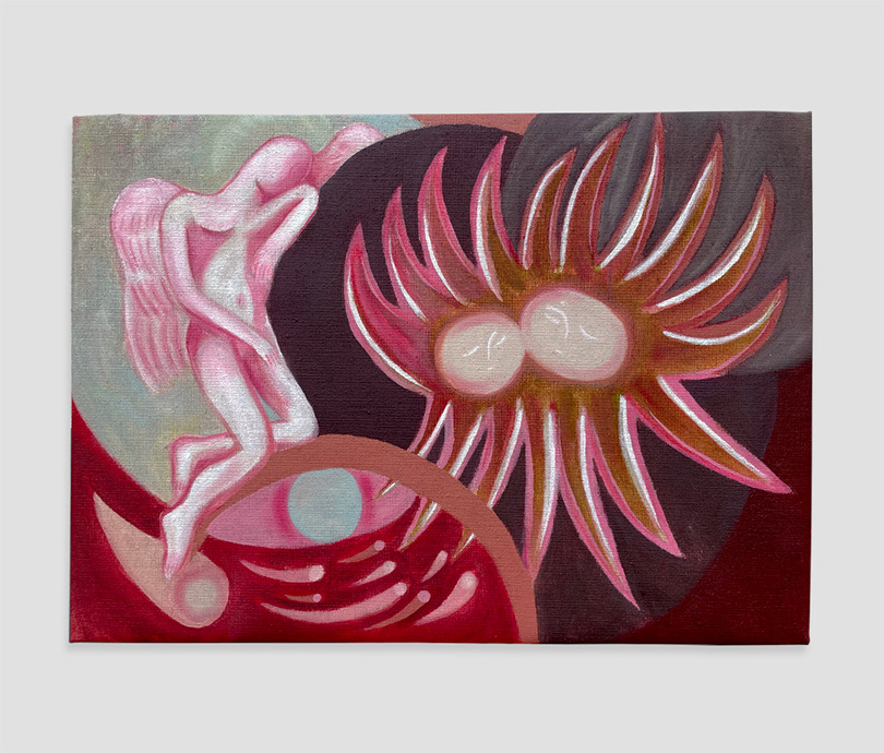 'Good daemon, bad omen' (2024), oil and wax pastel on paper, 59,4h x 42w cm