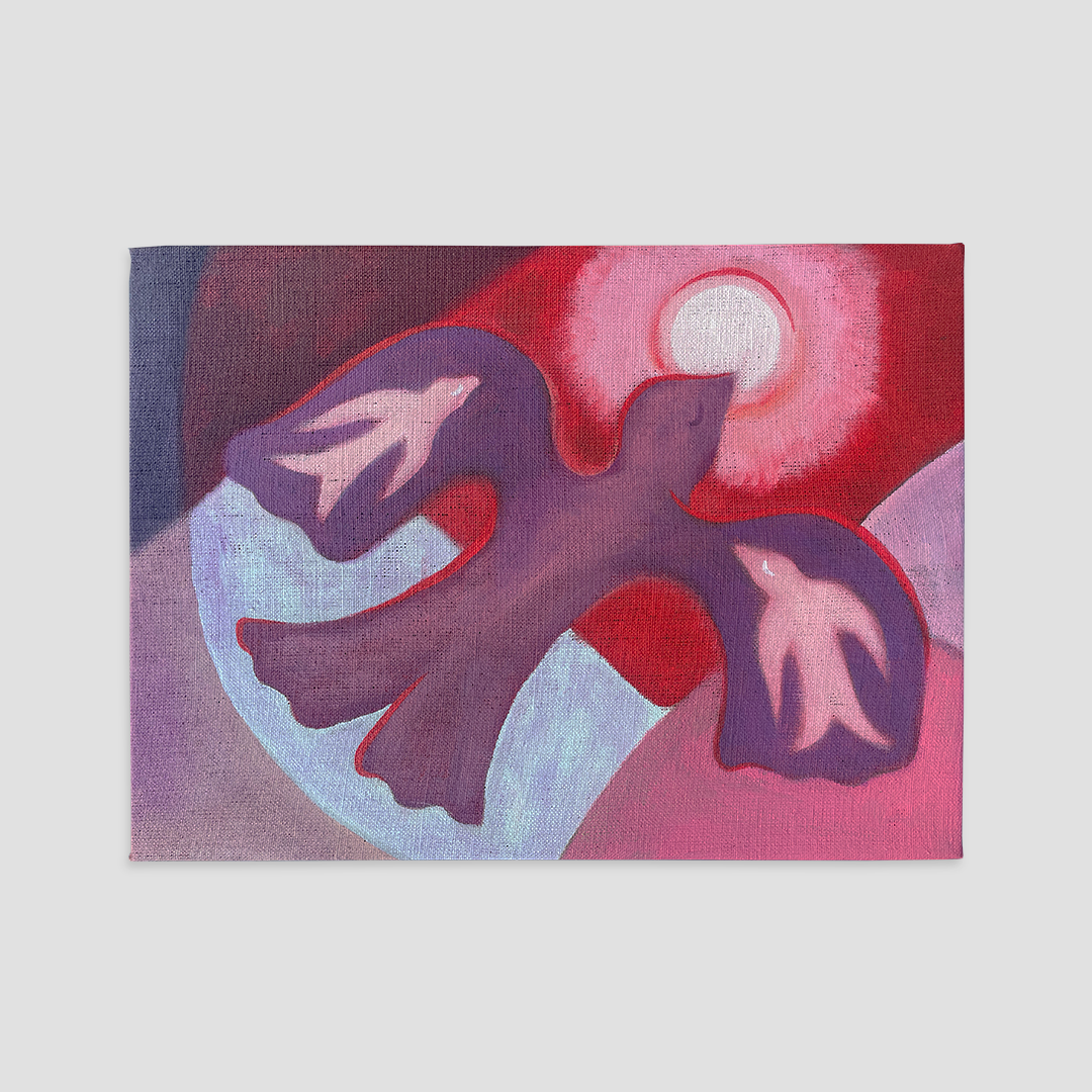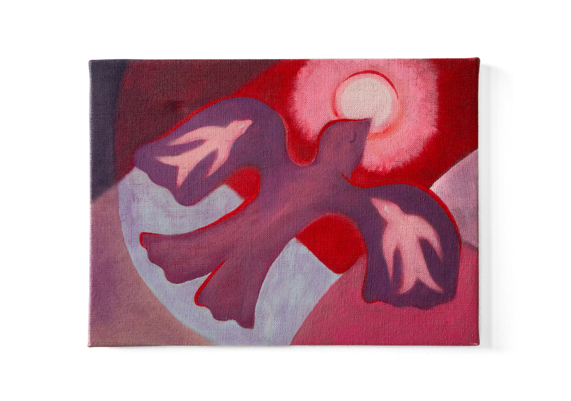 ‘Vision one, mother bird’ (2025), acrylic on linen canvas, 41h x 31w cm